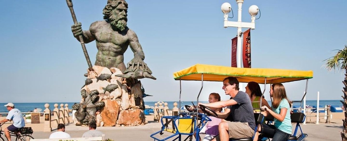 Virginia Beach offers a wide variety of attractions for different interests, from the lively oceanfront boardwalk with shops, restaurants, to the statue of King Neptune.